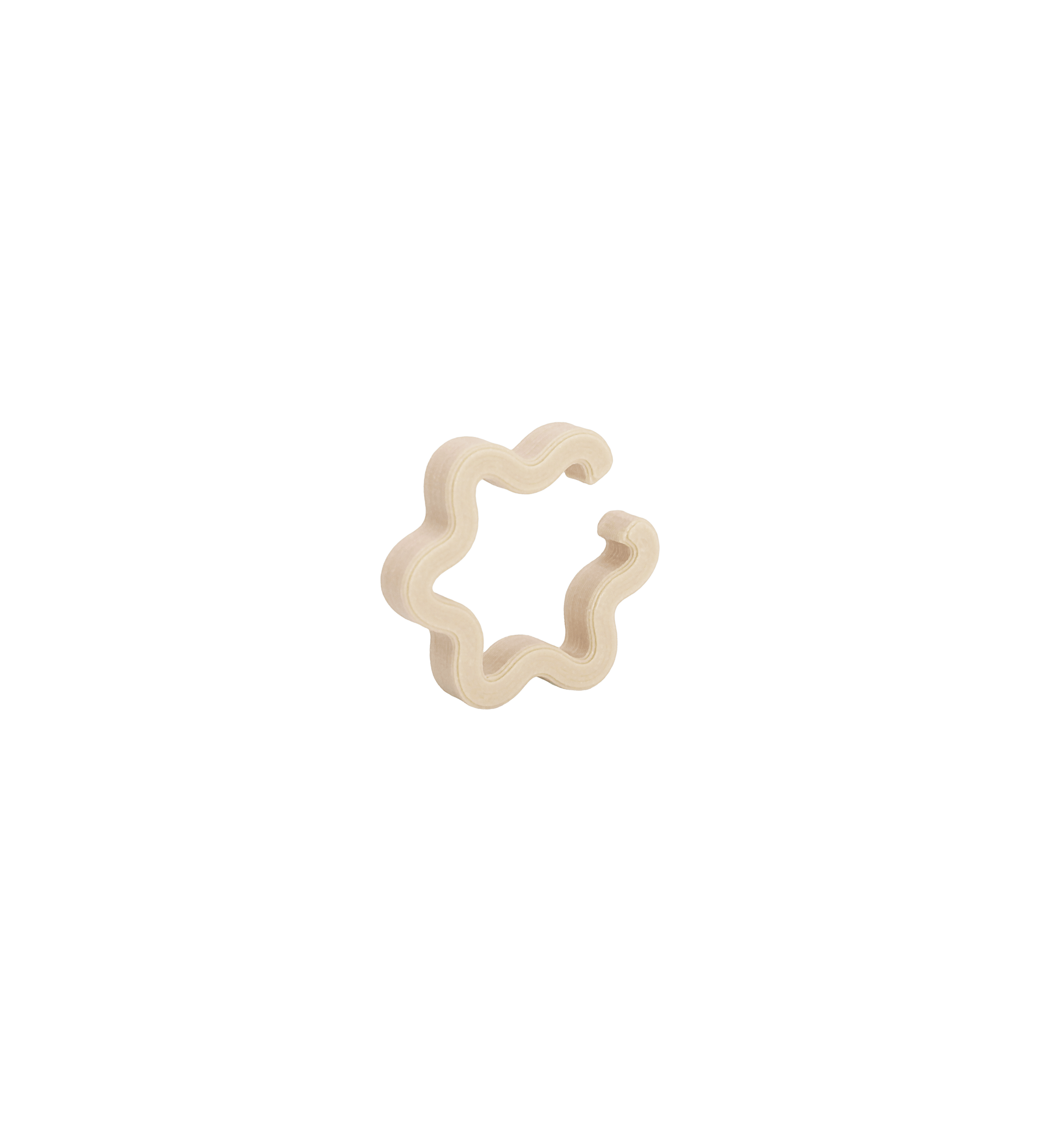 Diseñado y fabricado exclusivamente en impresoras 3D, utilizando acido poliláctico, un bioplástico (hecho a base de maíz, 100% reciclable y degradable bajo condiciones especiales en plantas de gran escala de compostaje).